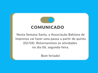 Nesta Semana Santa, a Associação Bahiana de Imprensa vai fazer uma pausa a partir de […]