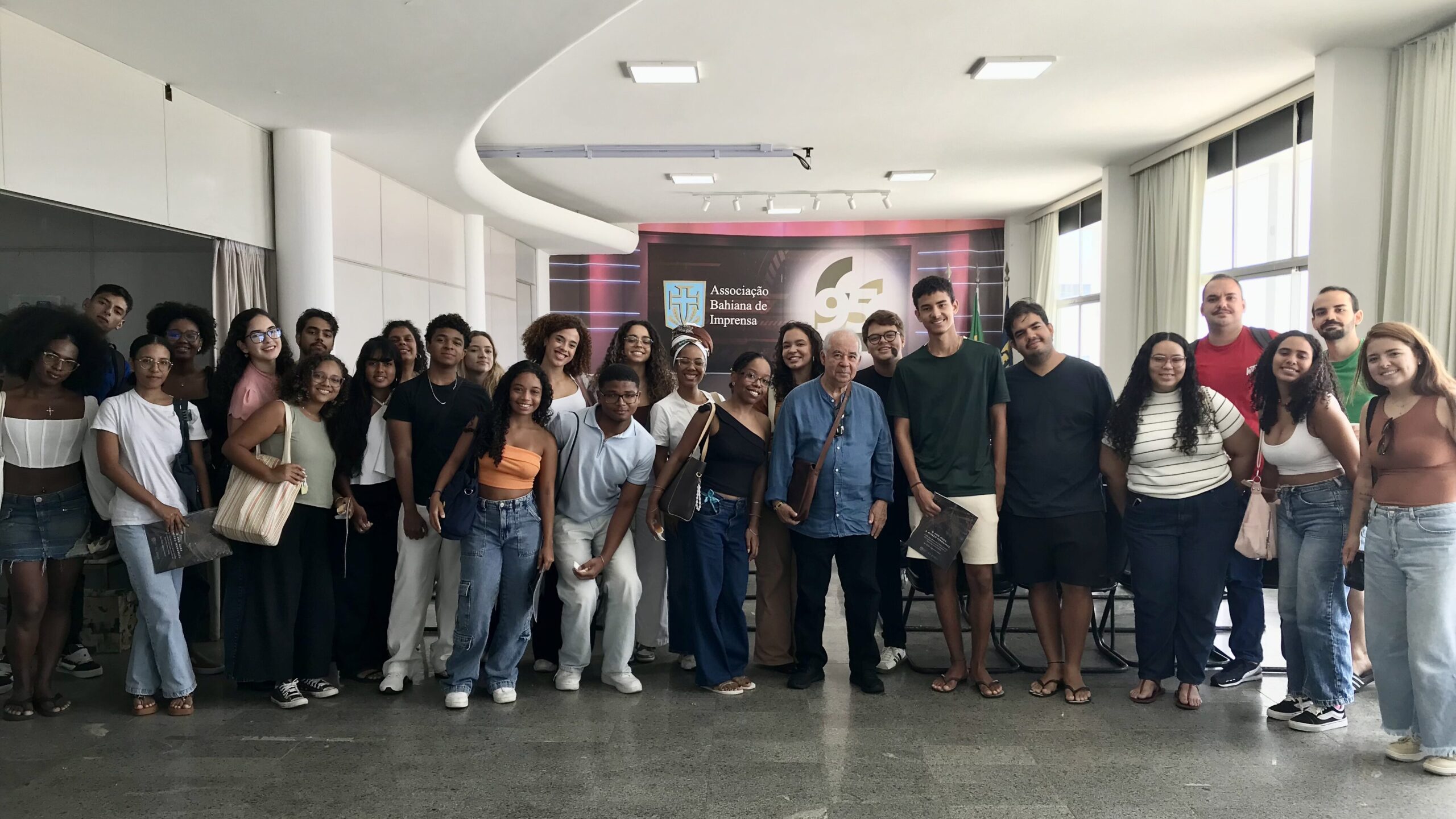 A Associação Bahiana de Imprensa recebeu, nesta quarta-feira (15), estudantes do primeiro semestre do curso de Jornalismo da Faculdade de Comunicação da Universidade Federal da Bahia (Facom/UFBA) para uma aula especial dedicada à trajetória da imprensa no estado. A atividade integra a disciplina História do Jornalismo, ministrada pelo professor Fernando Conceição, e teve como convidado o jornalista, escritor e pesquisador Luís Guilherme Pontes Tavares, vice-presidente da Assembleia Geral da ABI.