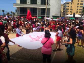Manifestações deste domingo (14), na Barra, denunciam aumento dos casos de feminicídio e risco de erosão democrática no país