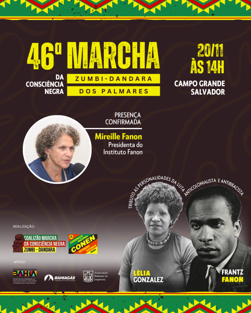A agenda de atividades no mês da Consciência Negra inclui diversos eventos convergentes, como o Seminário Cultura Negra: Instrumento de Luta por uma Sociedade com Justiça Social e Racial, realizado em 18 de outubro. Após a Marcha do dia 20 de novembro, está prevista para o dia 21, às 9h, no Salão Nobre da Reitoria da Universidade Federal da Bahia, a “Conferência Baiana do Centenário de Frantz Fanon: Legados e Perspectivas”, tendo como conferencista principal Mireille Fanon.