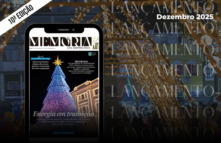 A Associação Bahiana de Imprensa lança, nesta quarta, 31 de dezembro, a 10ª edição da Revista Memória da Imprensa, número que encerra o ciclo editorial de 2025 reunindo reflexão, registro histórico e projeção de futuro. Com um olhar atento ao presente e às transformações que atravessam o jornalismo, a publicação consolida-se como espaço de análise qualificada, memória institucional e debate público.