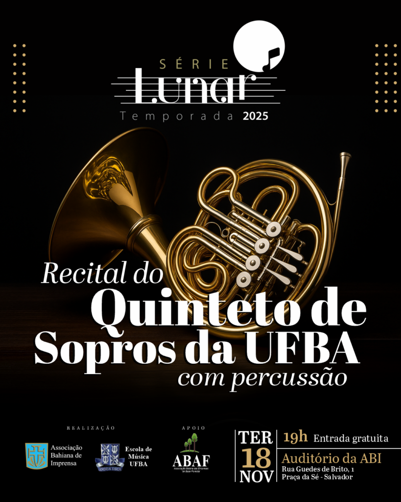 O Quinteto de Sopros da Universidade Federal da Bahia (UFBA) volta ao Auditório Samuel Celestino, na próxima terça (18), às 19h, para encantar o público da Série Lunar com um recital inédito. O grupo terá a participação do percussionista Isaac Novais e narração da professora e vice-diretora da Escola de Música (Emus/UFBA), Teca Gondim.