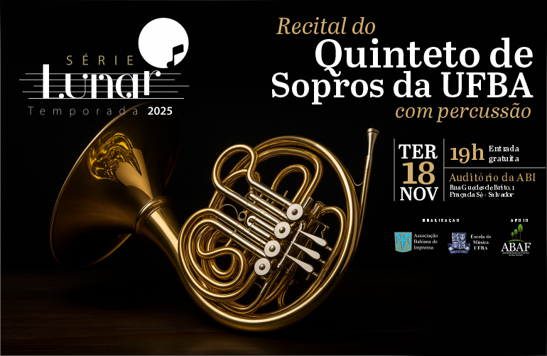 O Quinteto de Sopros da Universidade Federal da Bahia (UFBA) volta ao Auditório Samuel Celestino, na próxima terça (18), às 19h, para encantar o público da Série Lunar com um recital inédito. O grupo terá a participação do percussionista Isaac Novais e narração da professora e vice-diretora da Escola de Música (Emus/UFBA), Teca Gondim.